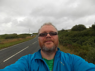 I pushed on and although the mountains were impressive they were shrouded in mist, at this point I began to envy those who were religious, being an athiest I had no deity or god figure to blame... the weather had turned atrocious I estimated winds or about 20 - 25 miles per hour backed up by rain that bunched itself into ballbearings aimed at my eyebaalls (I never will figure out how it still manages to him my eyes through glasses).
